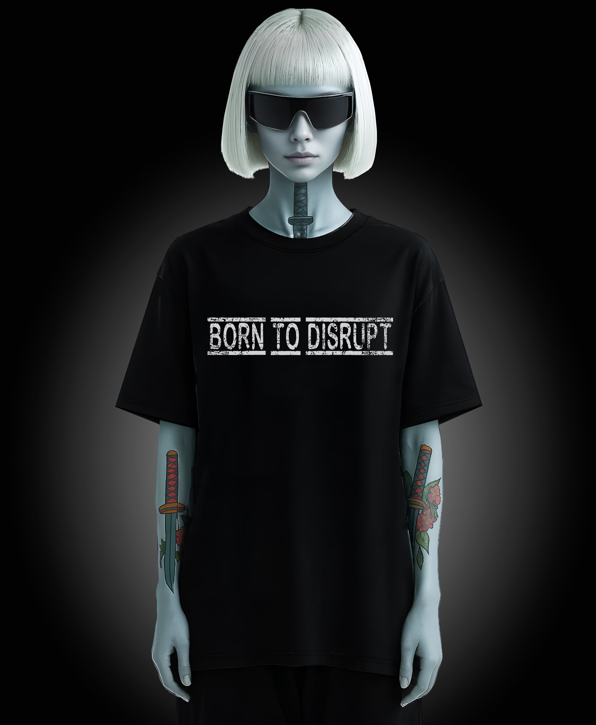Oversized black tee. Heavy cotton. Bold, high-contrast cyberpunk print with a touch of apocalyptic grit. Built for digital outlaws and those who don’t follow. XL–4XL relaxed fit drapes heavy — street-armor for neon alleys, empty highways, and everywhere in between. This isn’t just a shirt — it’s a signal to the network.