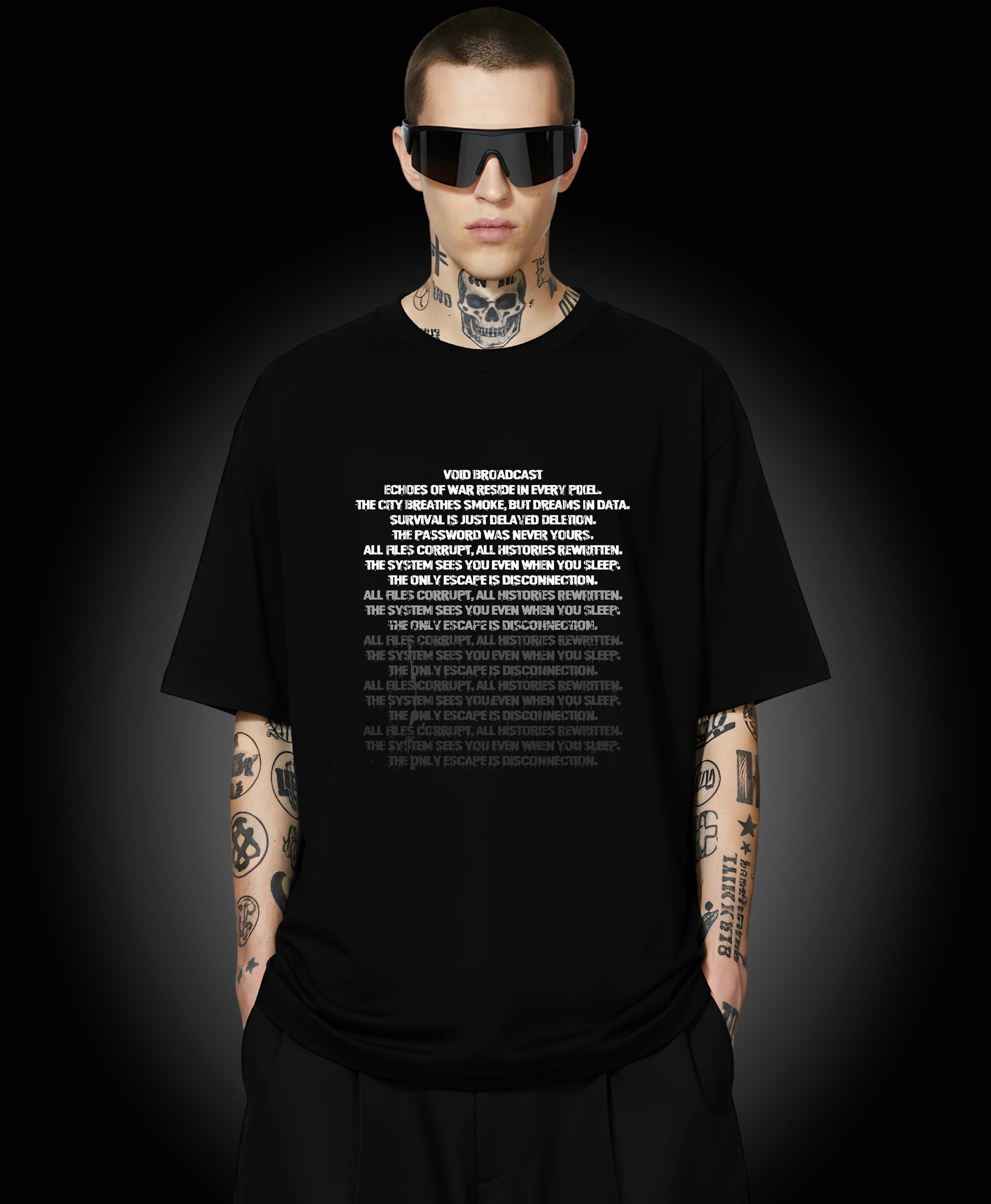 Oversized black tee. Heavy cotton. Bold, high-contrast cyberpunk print with a touch of apocalyptic grit. Built for digital outlaws and those who don’t follow. XL–4XL relaxed fit drapes heavy — street-armor for neon alleys, empty highways, and everywhere in between. This isn’t just a shirt — it’s a signal to the network.