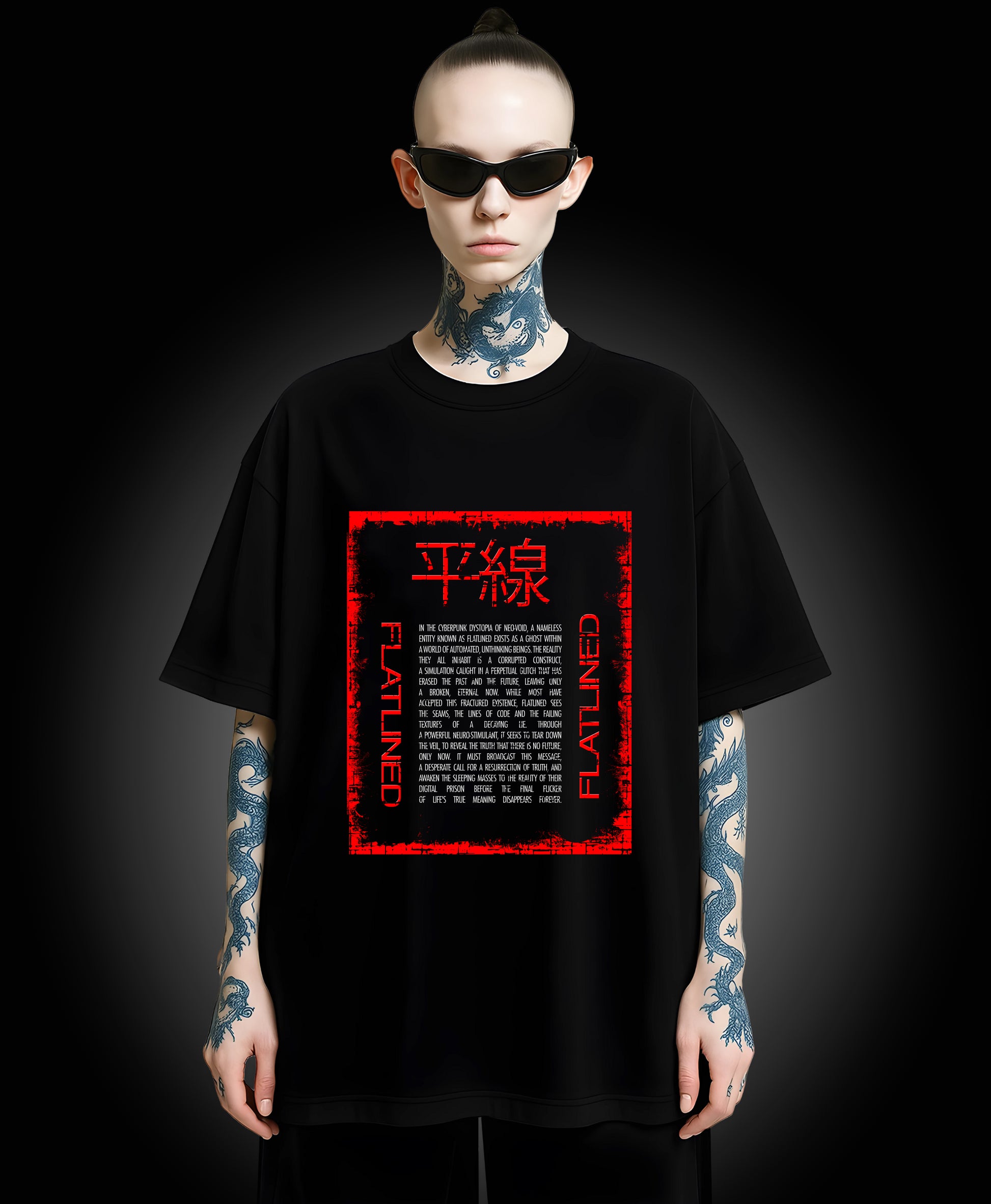 Oversized black tee. Heavy cotton. Bold, high-contrast cyberpunk print with a touch of apocalyptic grit. Built for digital outlaws and those who don’t follow. XL–4XL relaxed fit drapes heavy — street-armor for neon alleys, empty highways, and everywhere in between. This isn’t just a shirt — it’s a signal to the network.