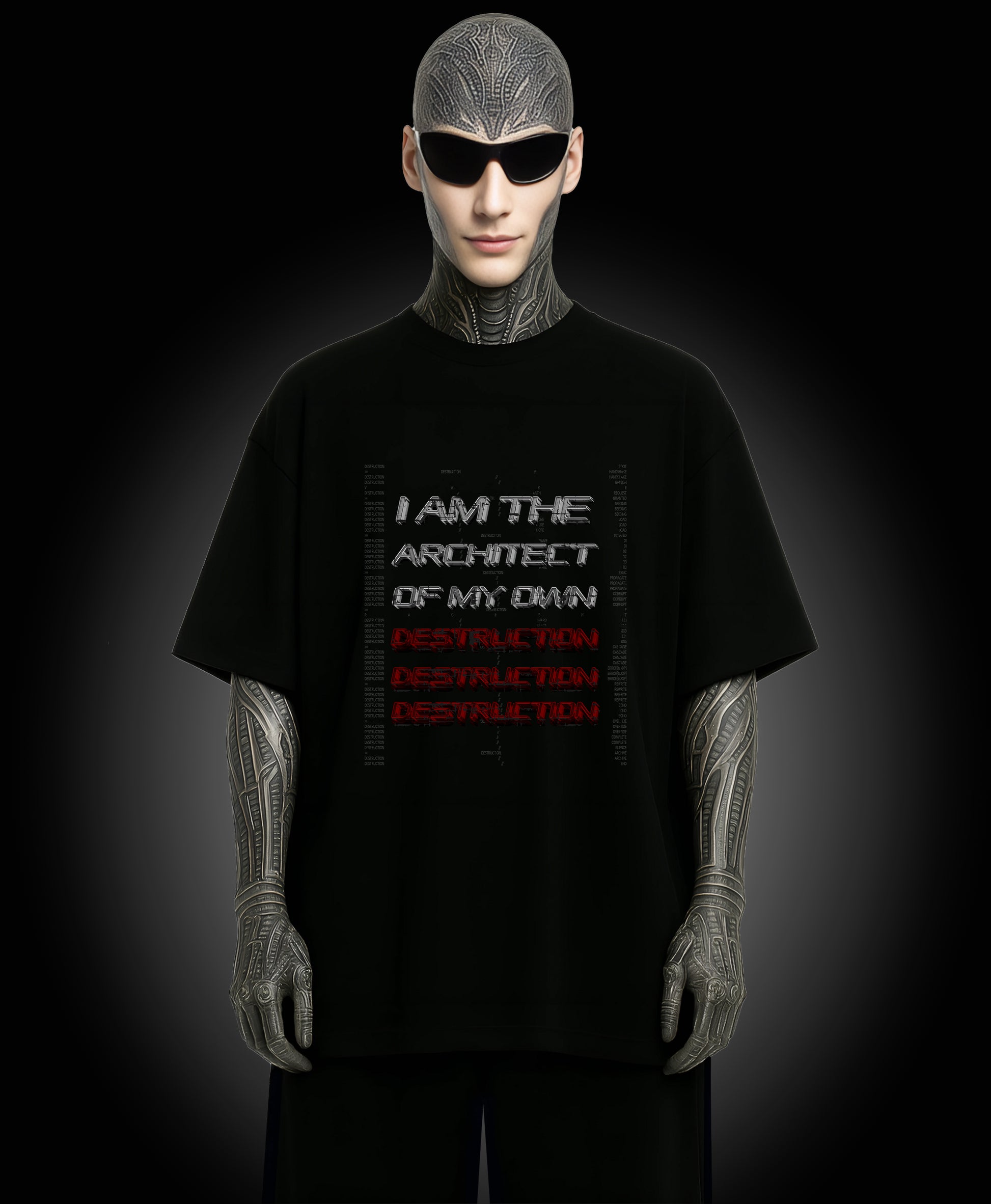 Oversized black tee. Heavy cotton. Bold, high-contrast cyberpunk print with a touch of apocalyptic grit. Built for digital outlaws and those who don’t follow. XL–4XL relaxed fit drapes heavy — street-armor for neon alleys, empty highways, and everywhere in between. This isn’t just a shirt — it’s a signal to the network.