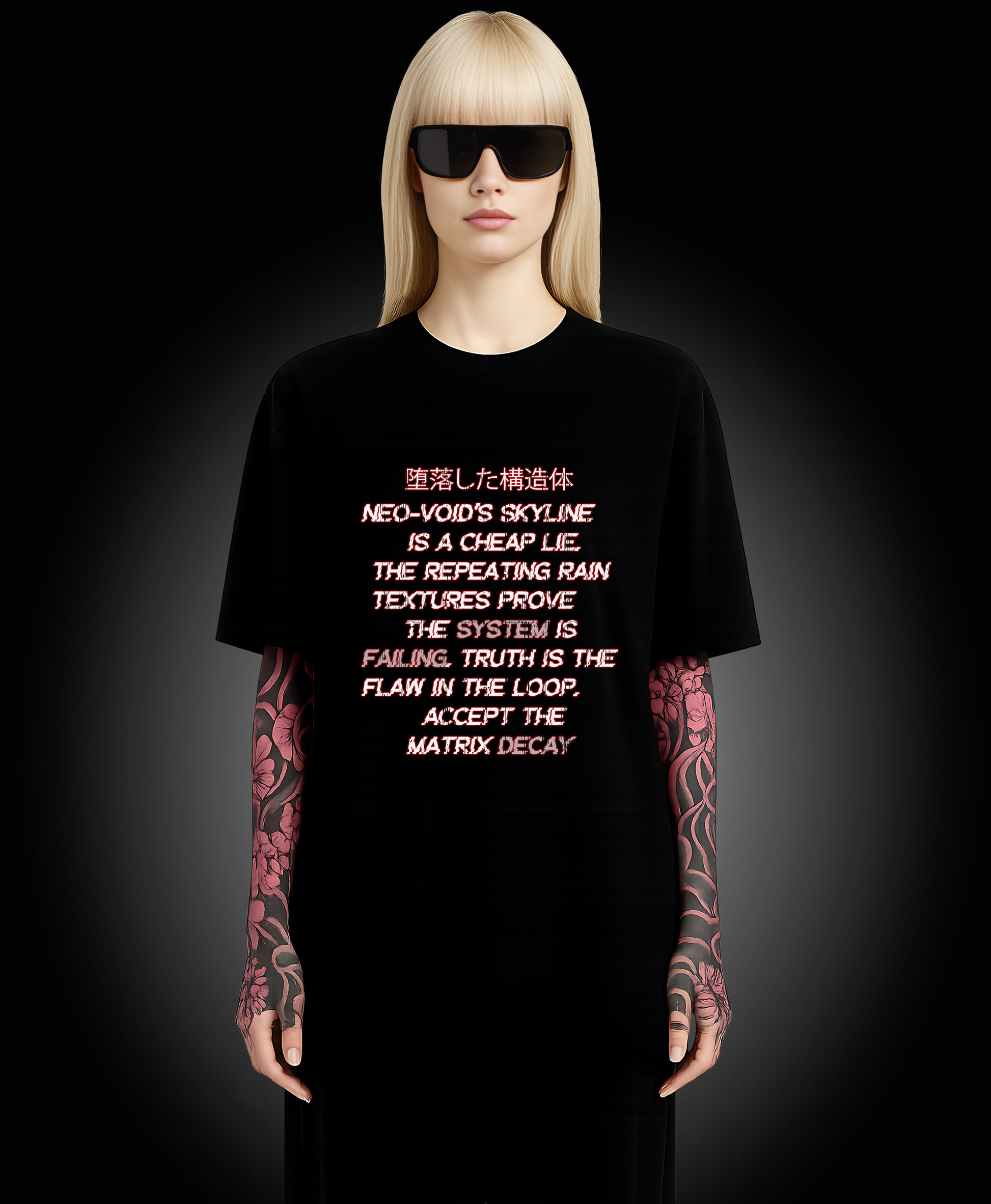 Oversized black tee. Heavy cotton. Bold, high-contrast cyberpunk print with a touch of apocalyptic grit. Built for digital outlaws and those who don’t follow. XL–4XL relaxed fit drapes heavy — street-armor for neon alleys, empty highways, and everywhere in between. This isn’t just a shirt — it’s a signal to the network.