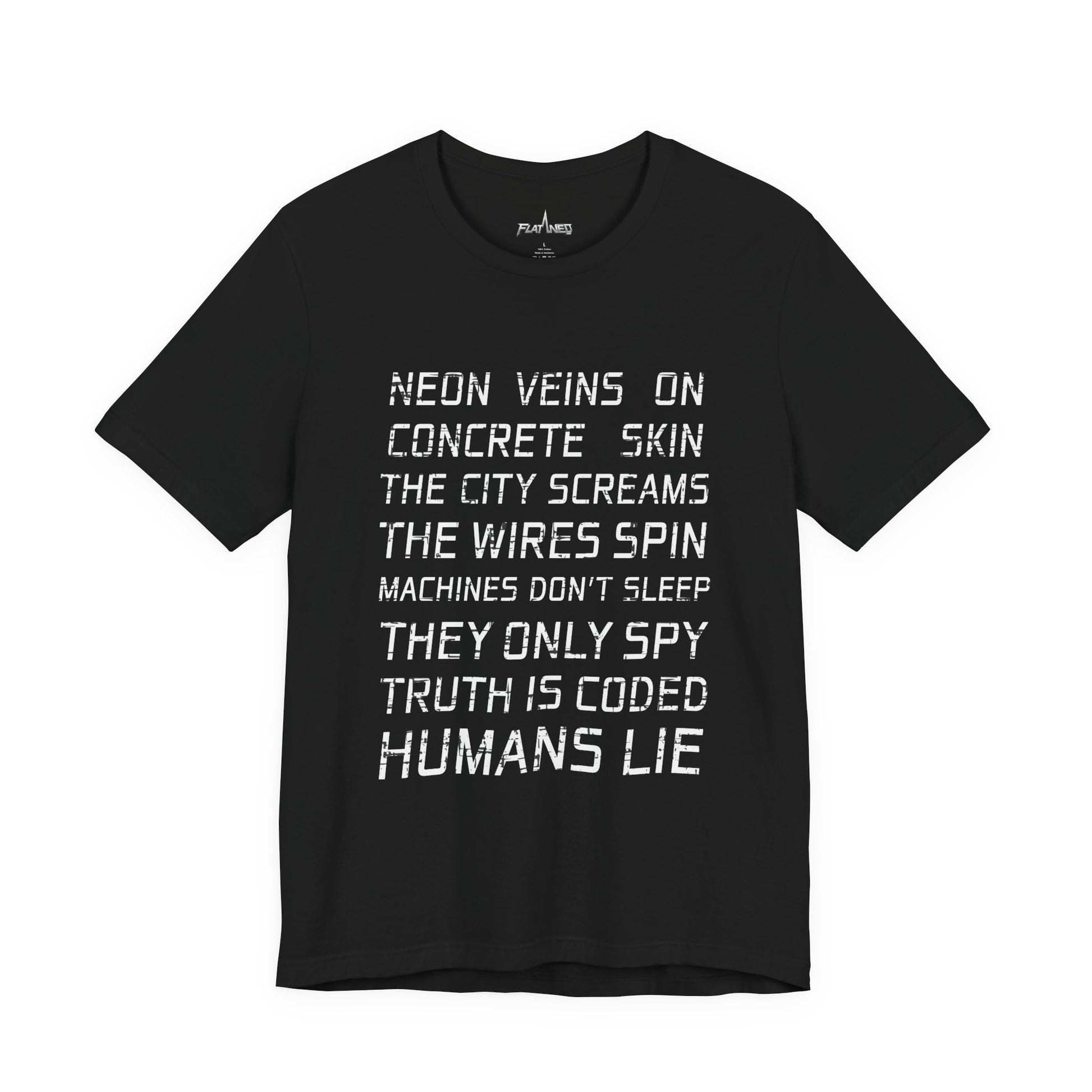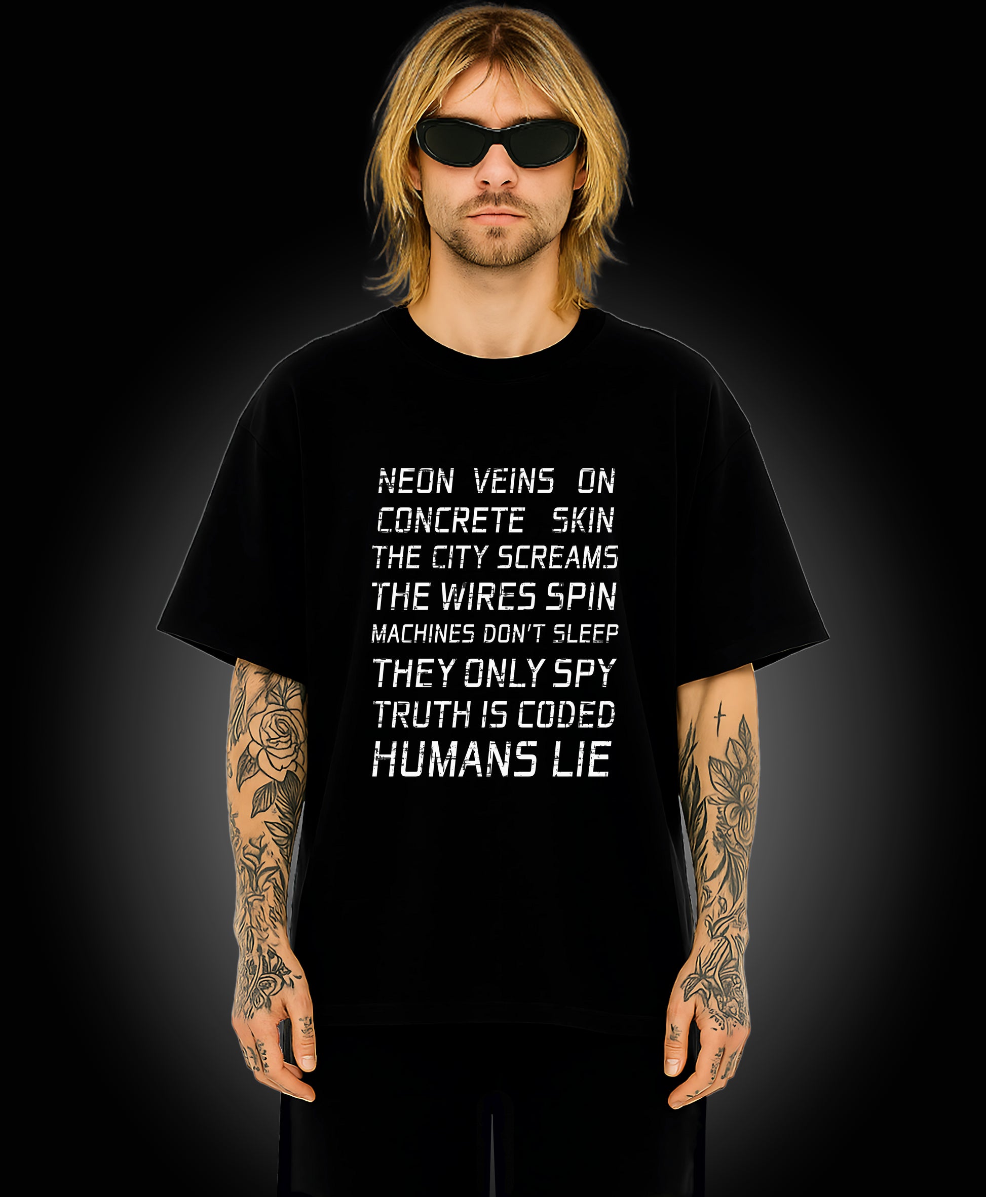 Oversized black tee. Heavy cotton. Bold, high-contrast cyberpunk print with a touch of apocalyptic grit. Built for digital outlaws and those who don’t follow. XL–4XL relaxed fit drapes heavy — street-armor for neon alleys, empty highways, and everywhere in between. This isn’t just a shirt — it’s a signal to the network.