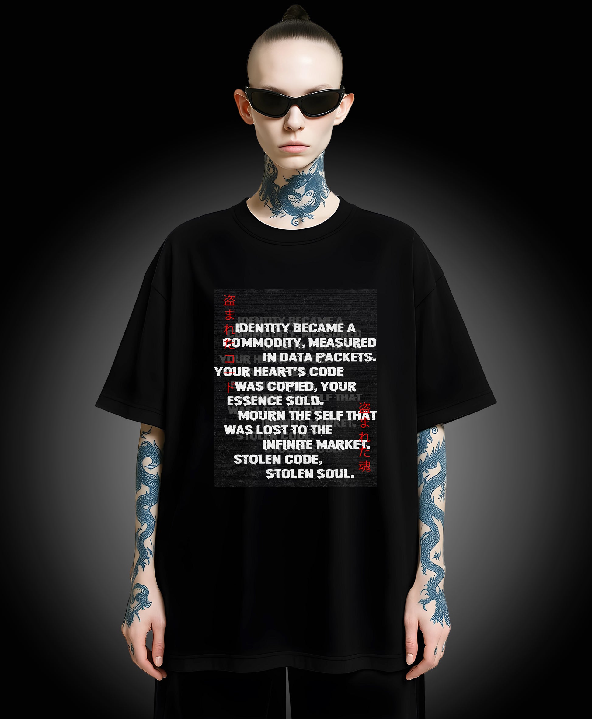 Oversized black tee. Heavy cotton. Bold, high-contrast cyberpunk print with a touch of apocalyptic grit. Built for digital outlaws and those who don’t follow. XL–4XL relaxed fit drapes heavy — street-armor for neon alleys, empty highways, and everywhere in between. This isn’t just a shirt — it’s a signal to the network.